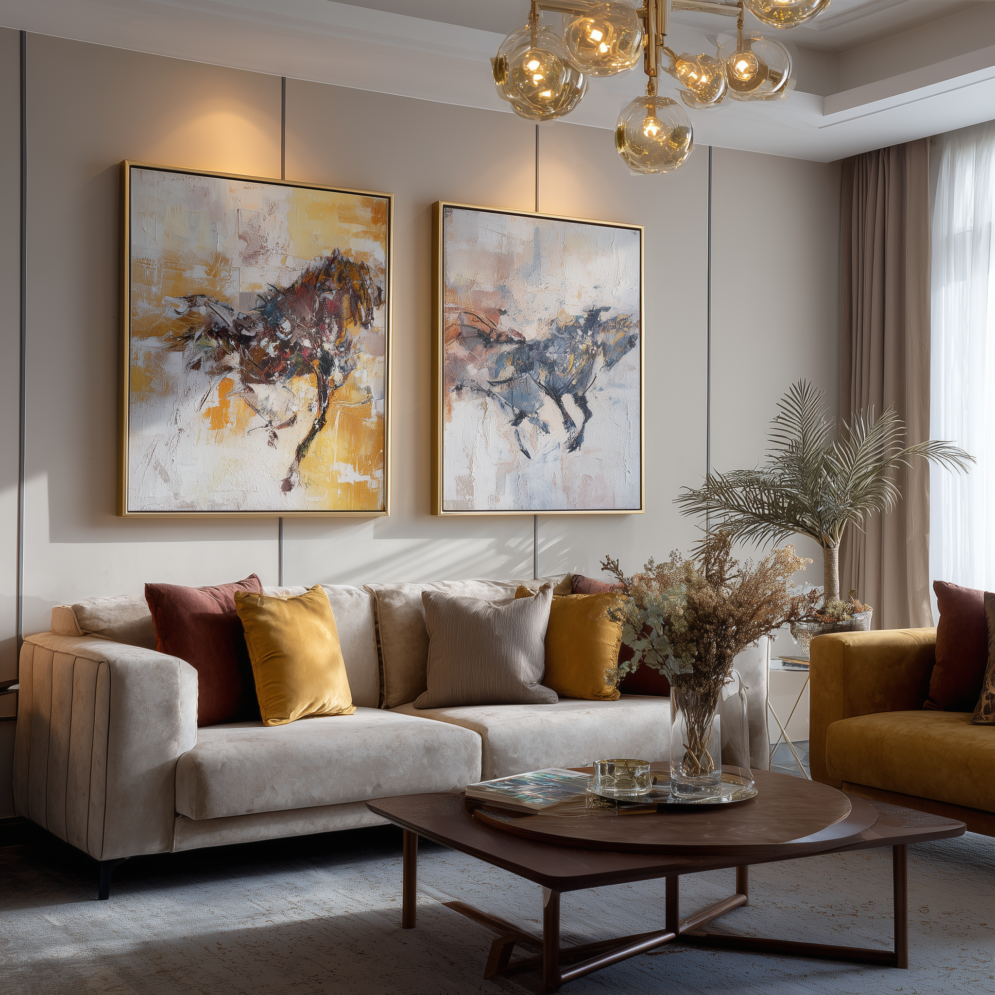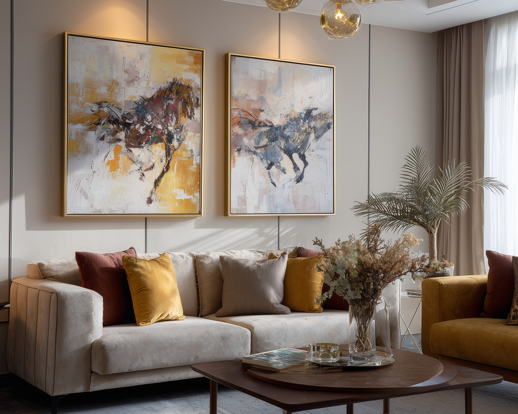See how Taraf lives at home. Homes with Taraf showcases real rooms styled with our art—calm palettes, strong forms, and refined finishes that anchor a space without noise.