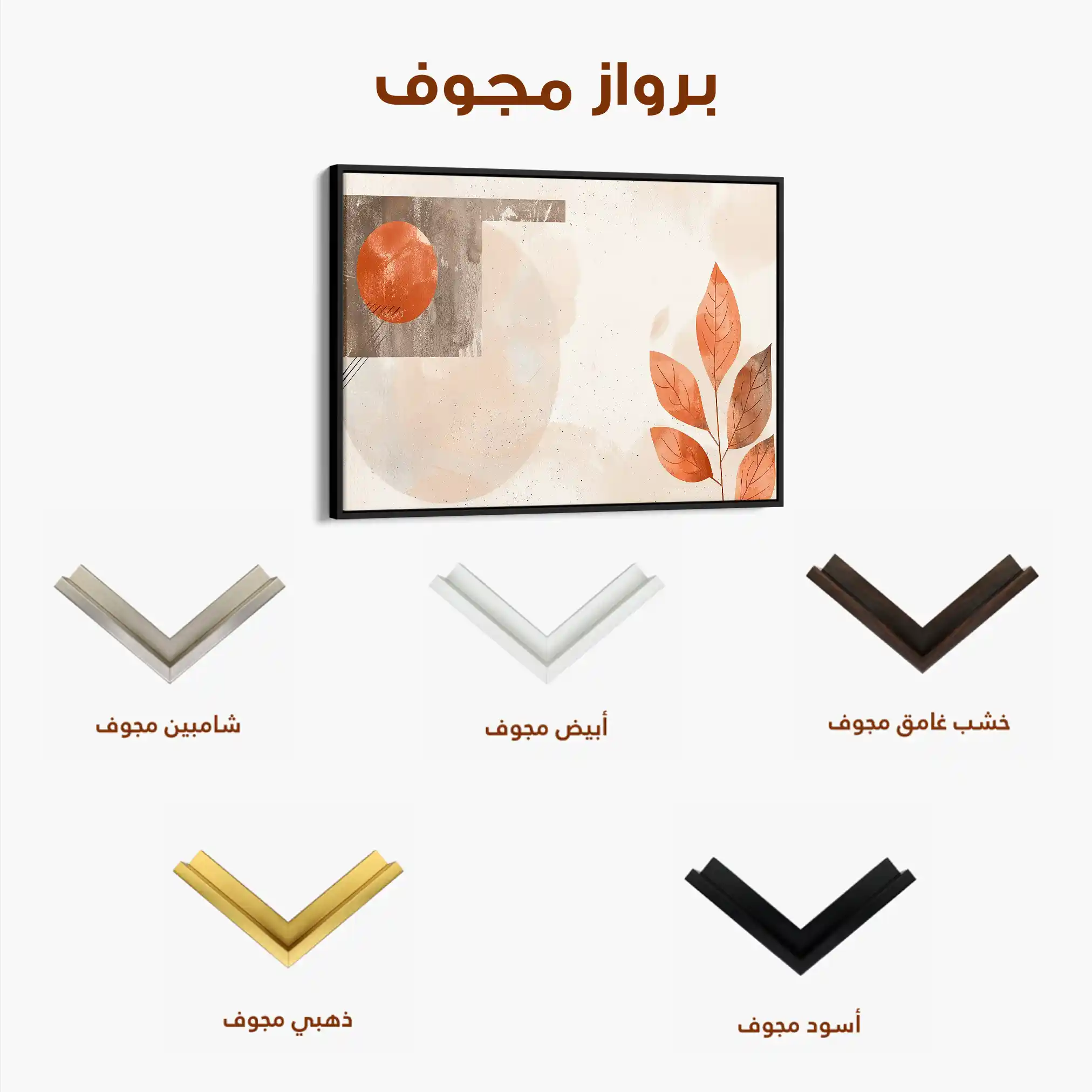 • الإطار (مجوف): إطار نحيف بفراغ رفيع يحيط باللوحة ليُبرز الحافة ويمنح ظلاً خفيفاً وإحساس صالات العرض؛ يصل جاهزاً للتعليق.
