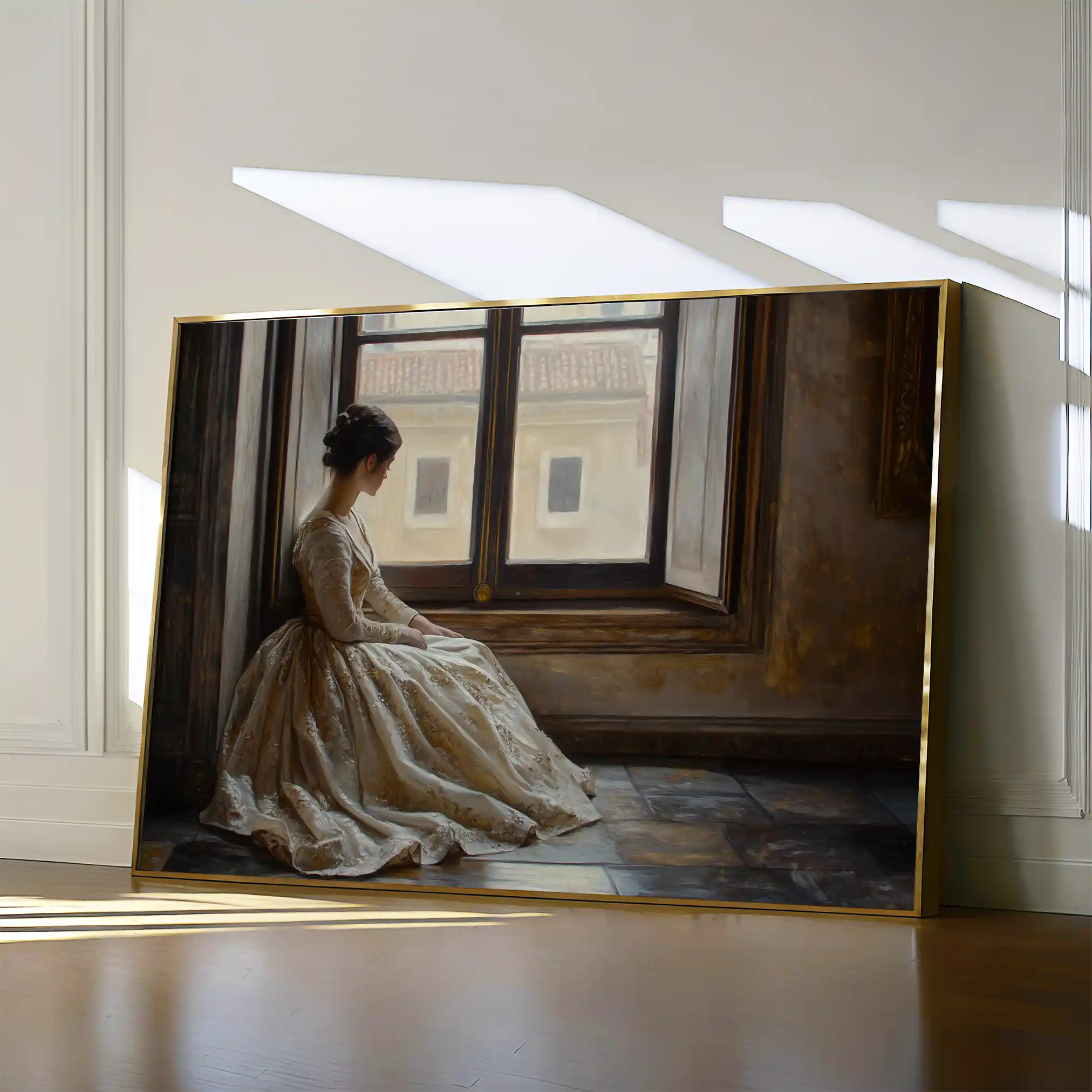 • الإطار (مجوف): إطار نحيف بفراغ رفيع يحيط باللوحة ليُبرز الحافة ويمنح ظلاً خفيفاً وإحساس صالات العرض؛ يصل جاهزاً للتعليق.