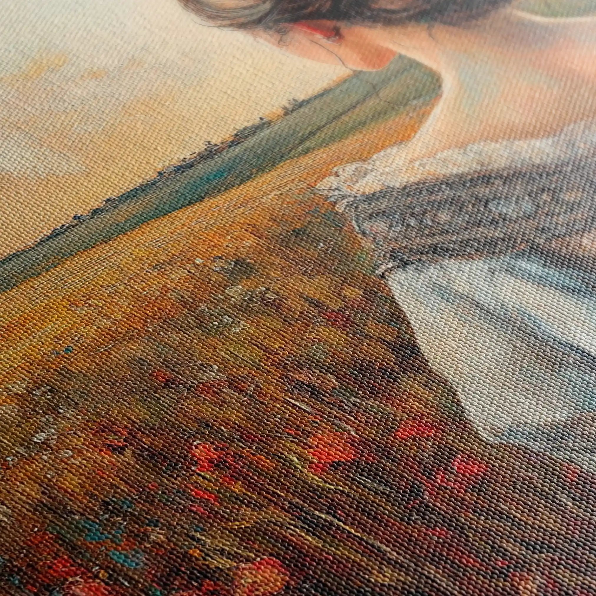 • الطباعة والمواد: طباعة فنية بأحبار أرشيفية على قماش قطني 410 جم/م² بسطح مطفي يقلّل الوهج ويبرز العمق.