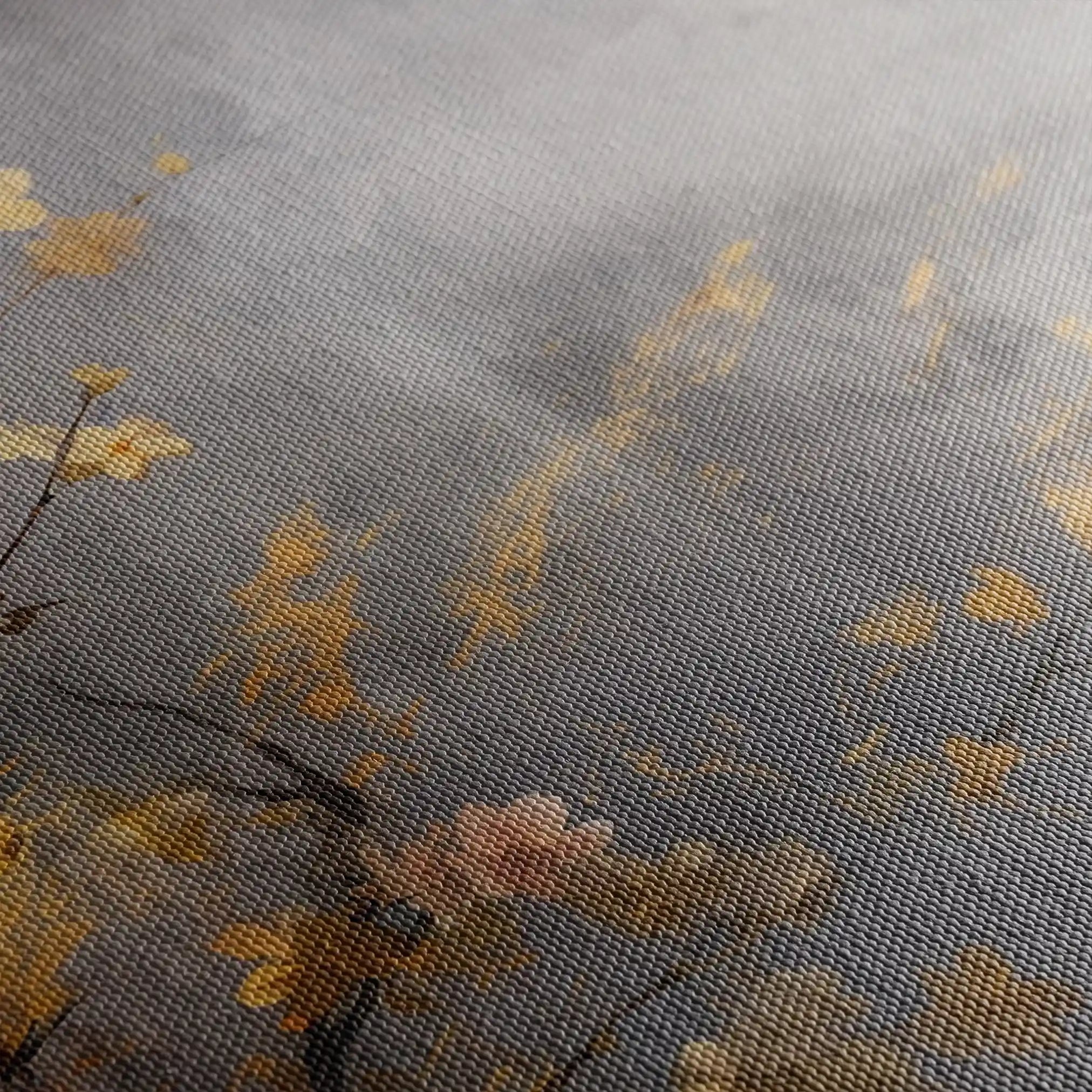 • الطباعة والمواد: طباعة فنية بأحبار أرشيفية على قماش قطني 410 جم/م² بسطح مطفي يقلّل الوهج ويبرز العمق.