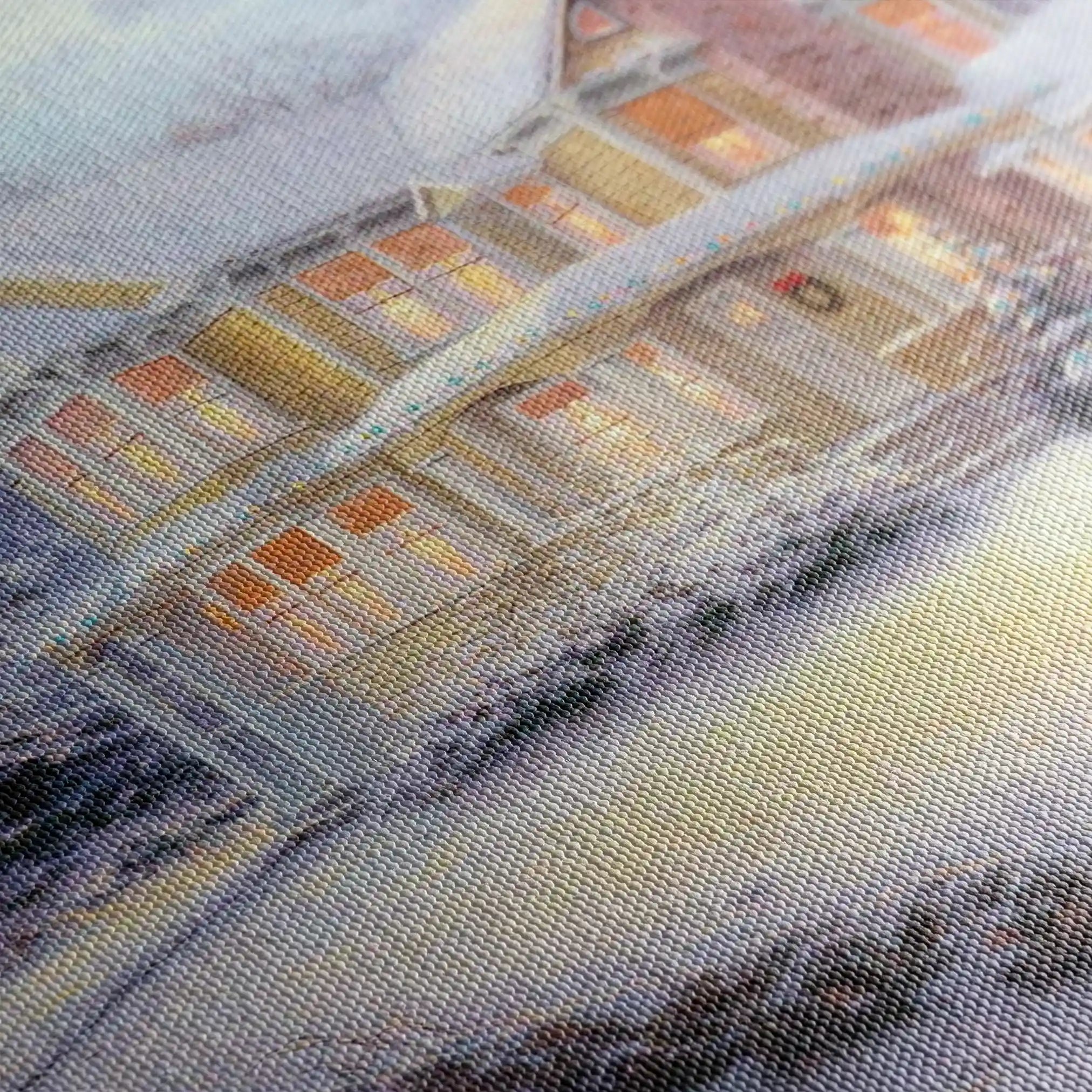 • الطباعة والمواد: طباعة فنية بأحبار أرشيفية على قماش قطني 410 جم/م² بسطح مطفي يقلّل الوهج ويبرز العمق.