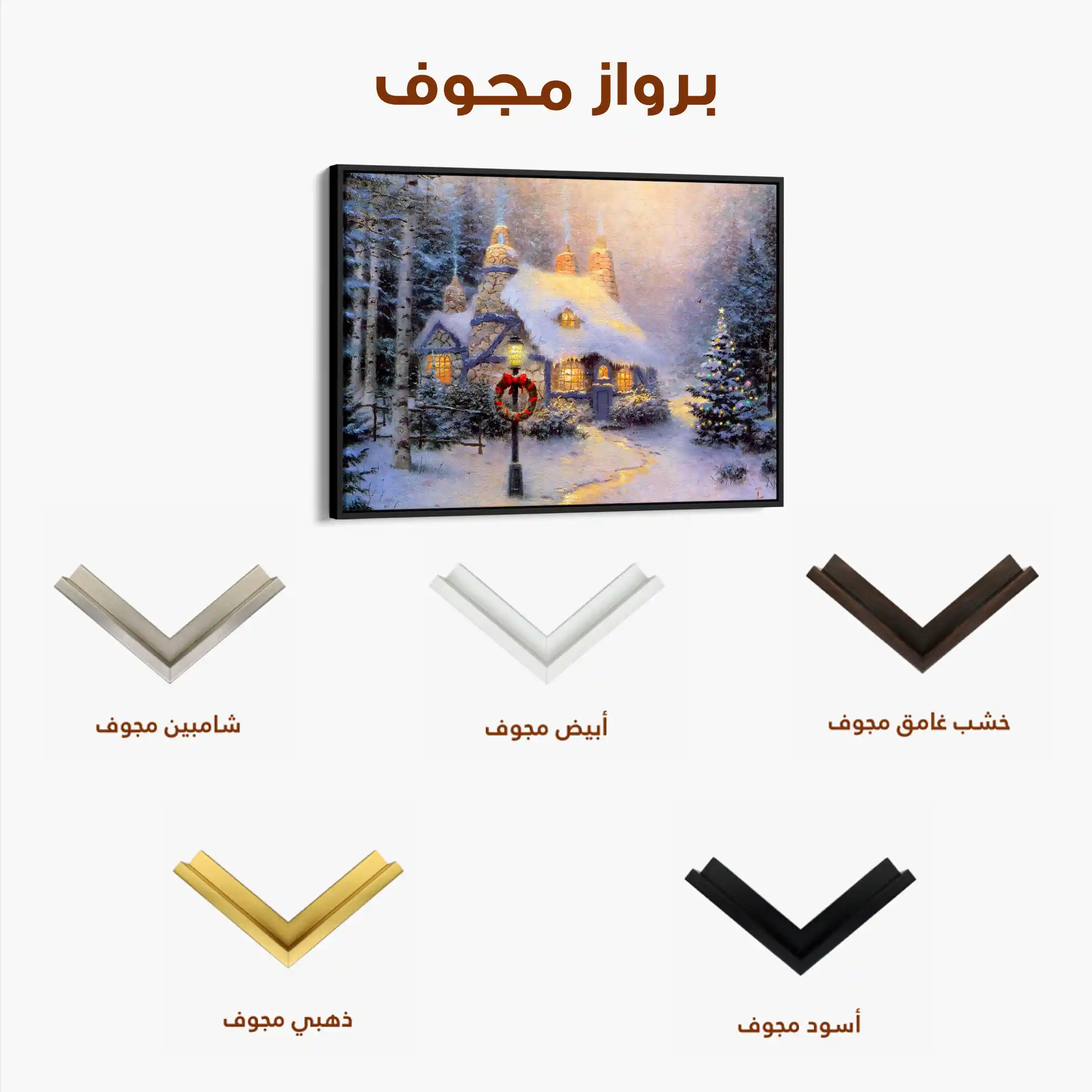• الإطار (مجوف): إطار نحيف بفراغ رفيع يحيط باللوحة ليُبرز الحافة ويمنح ظلاً خفيفاً وإحساس صالات العرض؛ يصل جاهزاً للتعليق.