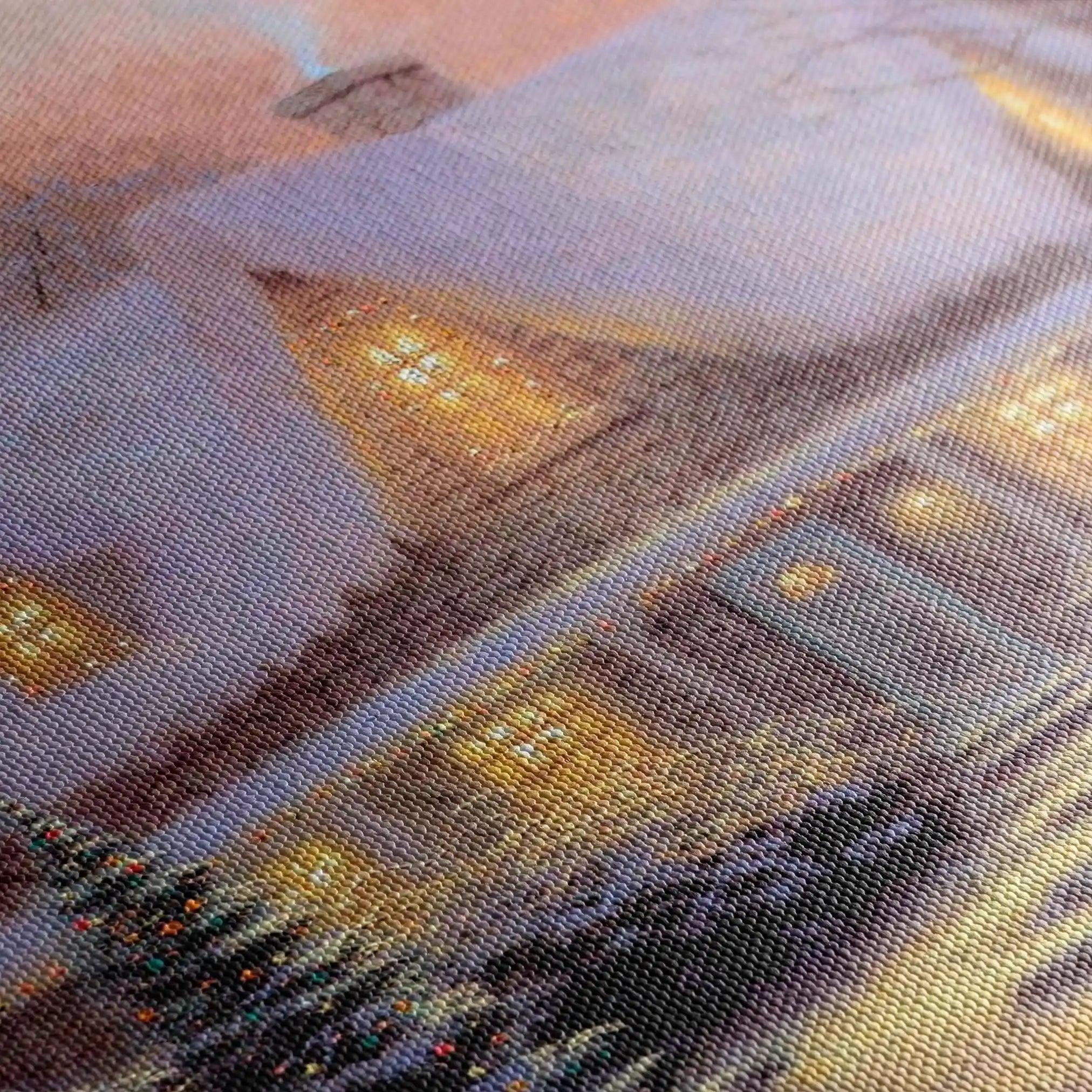 • الطباعة والمواد: طباعة فنية بأحبار أرشيفية على قماش قطني 410 جم/م² بسطح مطفي يقلّل الوهج ويبرز العمق.