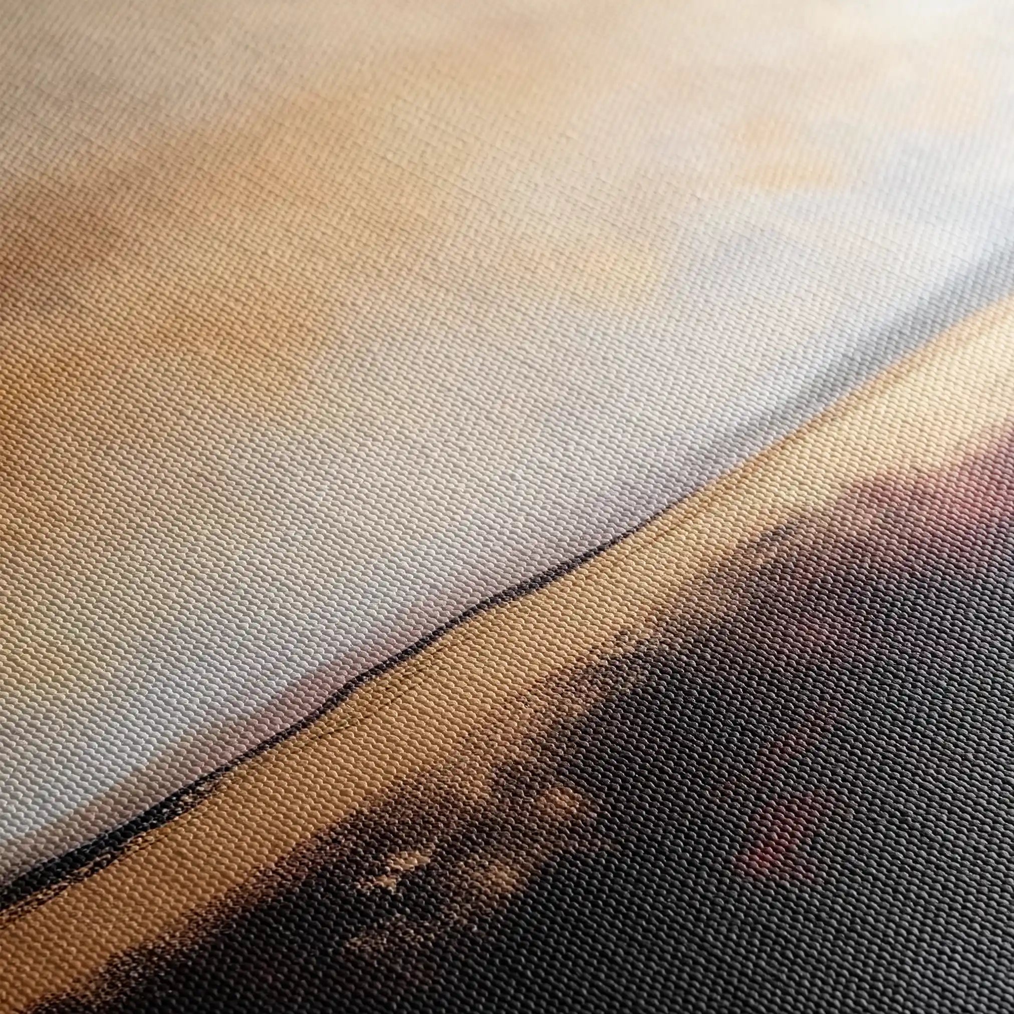 • الطباعة والمواد: طباعة فنية بأحبار أرشيفية على قماش قطني 410 جم/م² بسطح مطفي يقلّل الوهج ويبرز العمق.