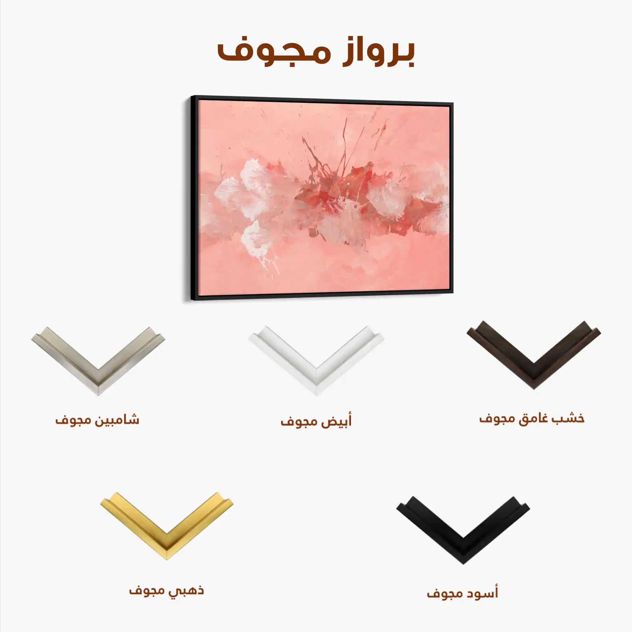 • الإطار (مجوف): إطار نحيف بفراغ رفيع يحيط باللوحة ليُبرز الحافة ويمنح ظلاً خفيفاً وإحساس صالات العرض؛ يصل جاهزاً للتعليق.