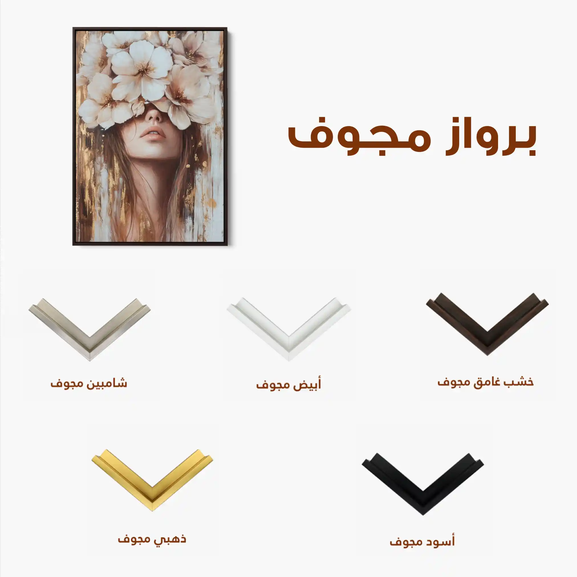 • الإطار (مجوف): إطار نحيف بفراغ رفيع يحيط باللوحة ليُبرز الحافة ويمنح ظلاً خفيفاً وإحساس صالات العرض؛ يصل جاهزاً للتعليق.