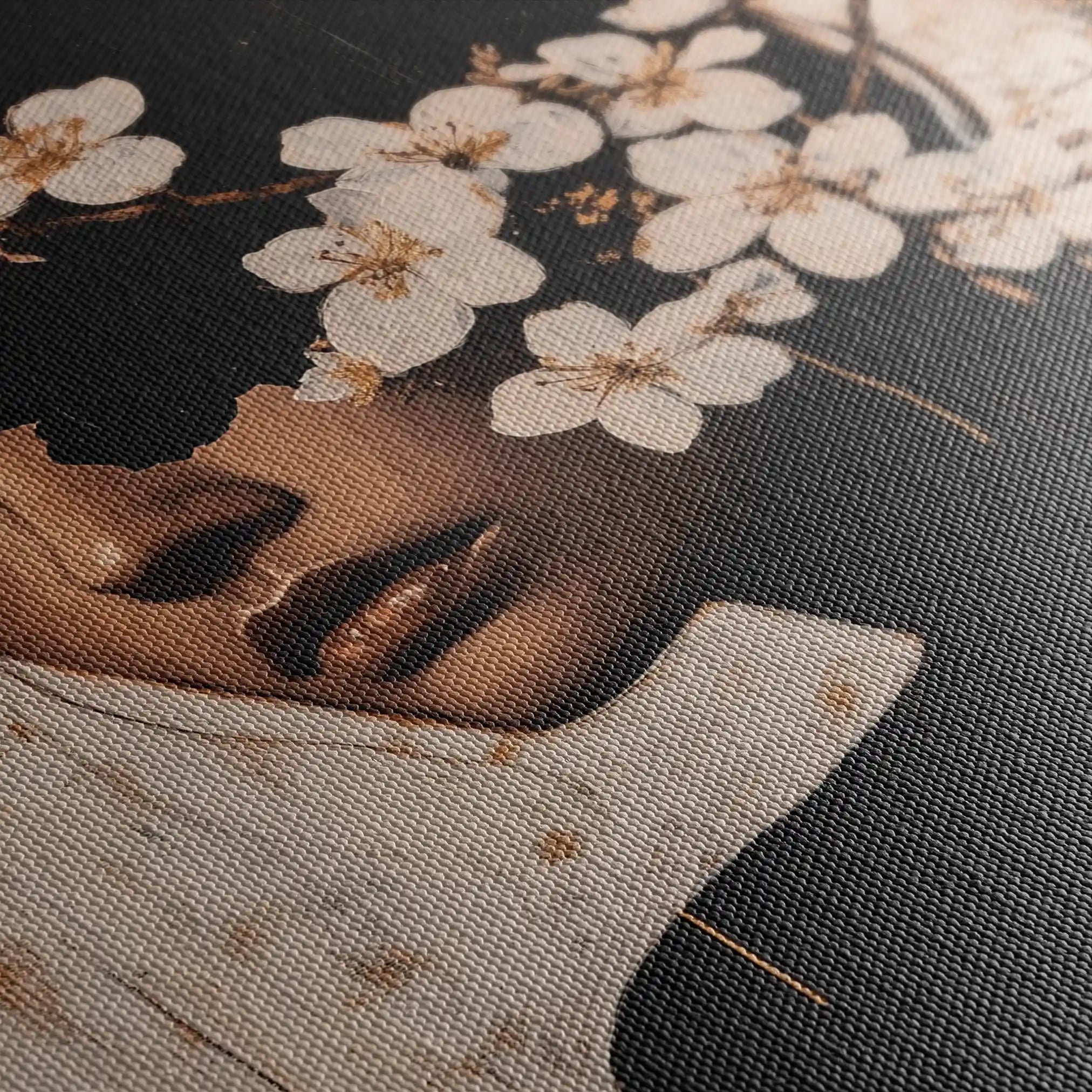 • الطباعة والمواد: طباعة فنية بأحبار أرشيفية على قماش قطني 410 جم/م² بسطح مطفي يقلّل الوهج ويبرز العمق.