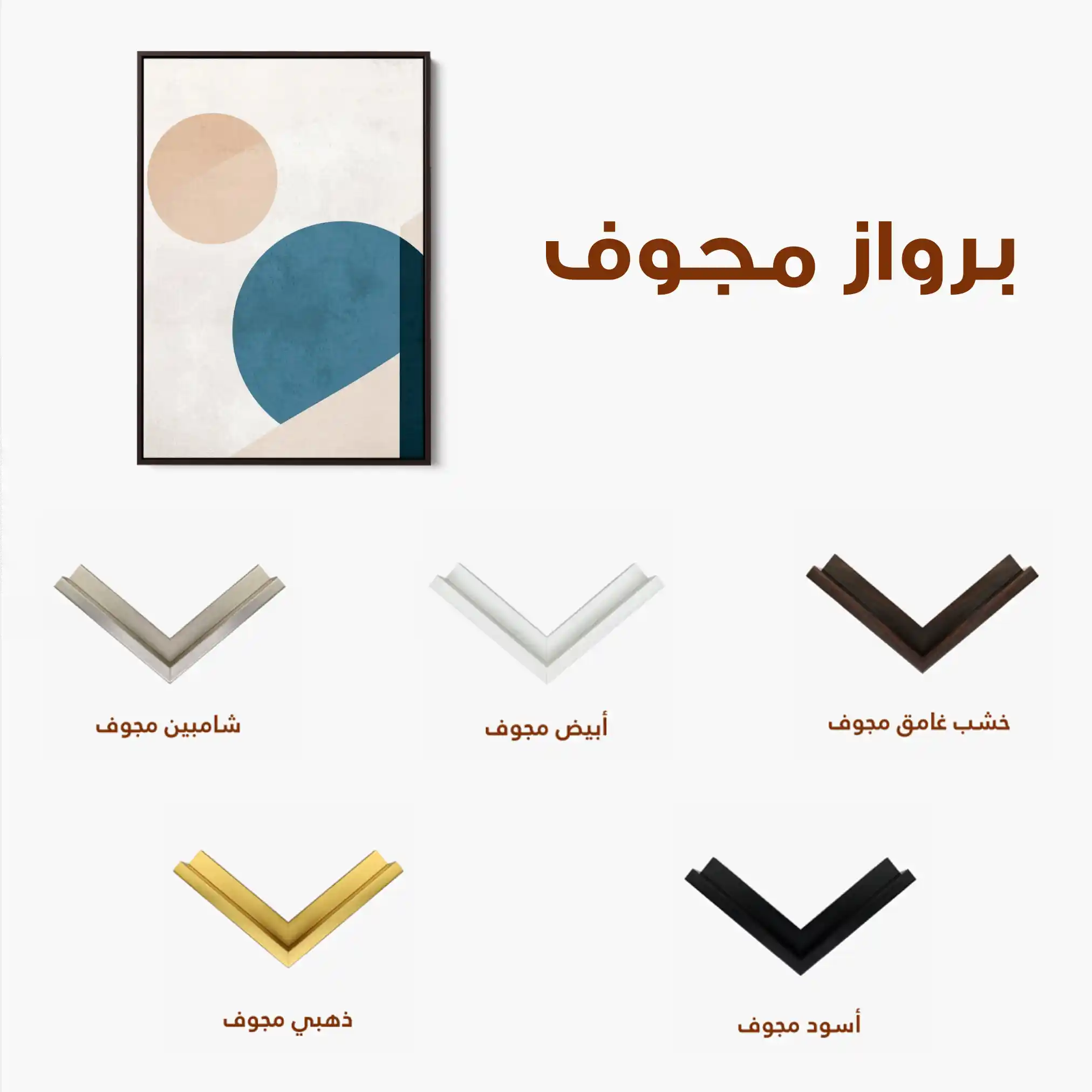 • الإطار (مجوف): إطار نحيف بفراغ رفيع يحيط باللوحة ليُبرز الحافة ويمنح ظلاً خفيفاً وإحساس صالات العرض؛ يصل جاهزاً للتعليق.