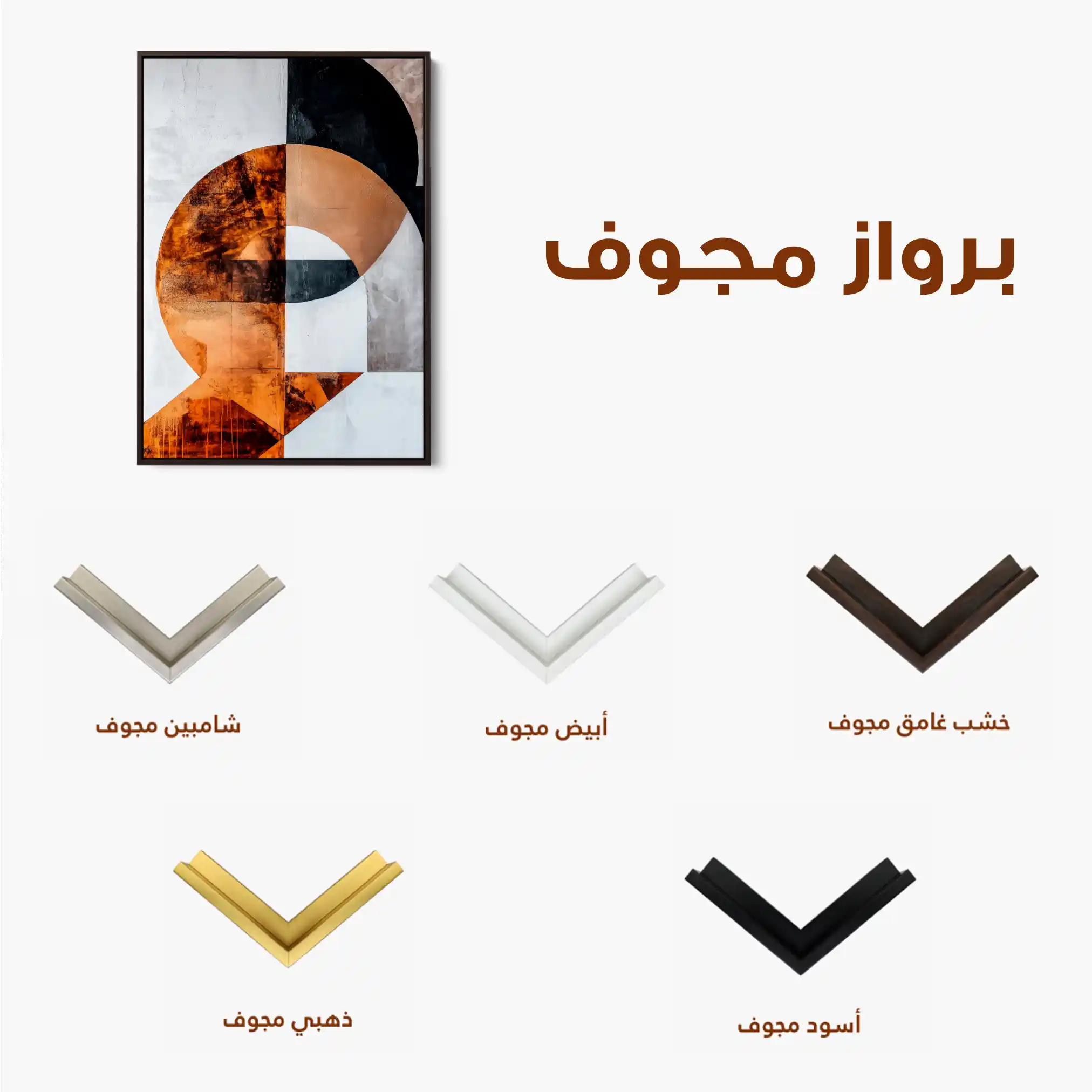 • الإطار (مجوف): إطار نحيف بفراغ رفيع يحيط باللوحة ليُبرز الحافة ويمنح ظلاً خفيفاً وإحساس صالات العرض؛ يصل جاهزاً للتعليق.