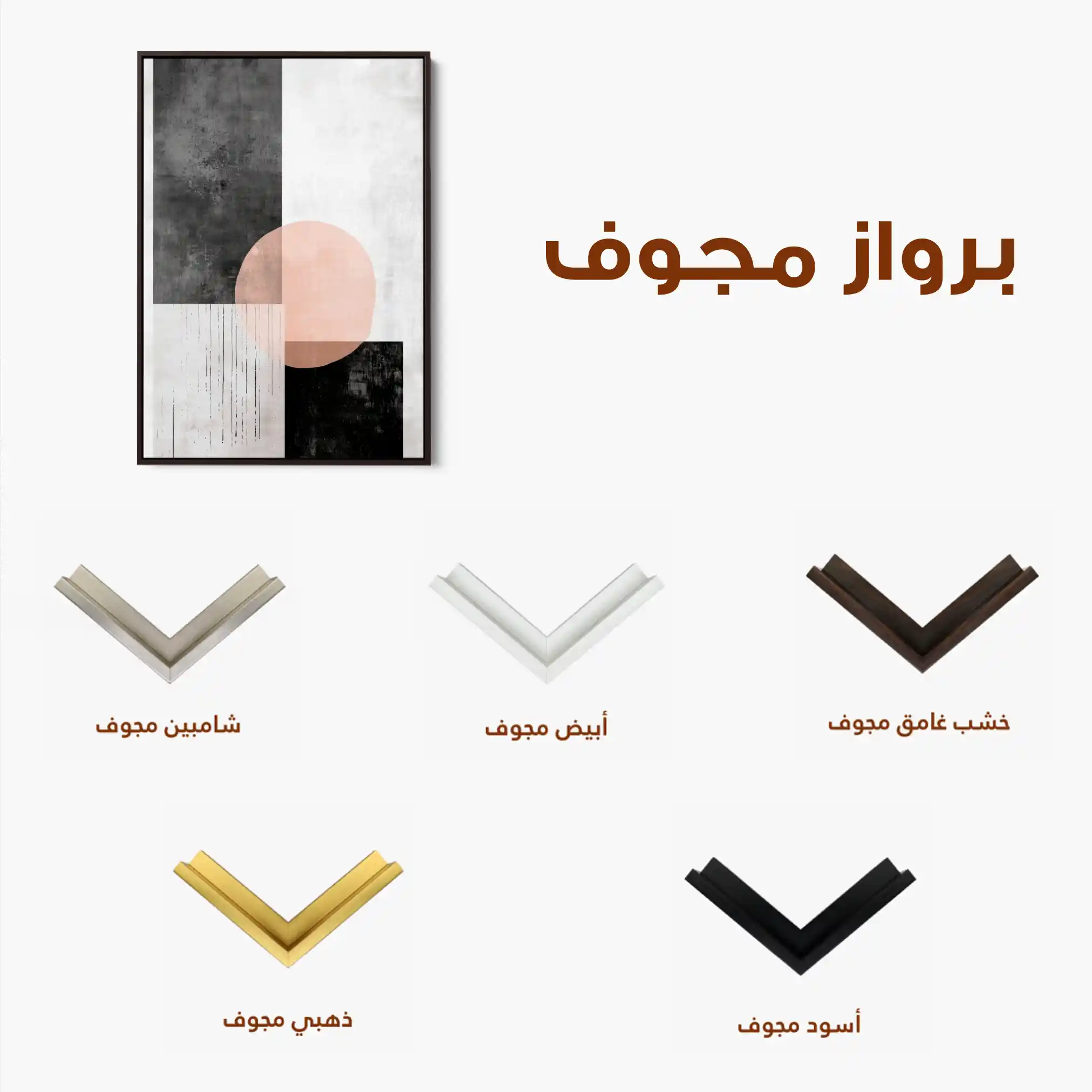 • الإطار (مجوف): إطار نحيف بفراغ رفيع يحيط باللوحة ليُبرز الحافة ويمنح ظلاً خفيفاً وإحساس صالات العرض؛ يصل جاهزاً للتعليق.