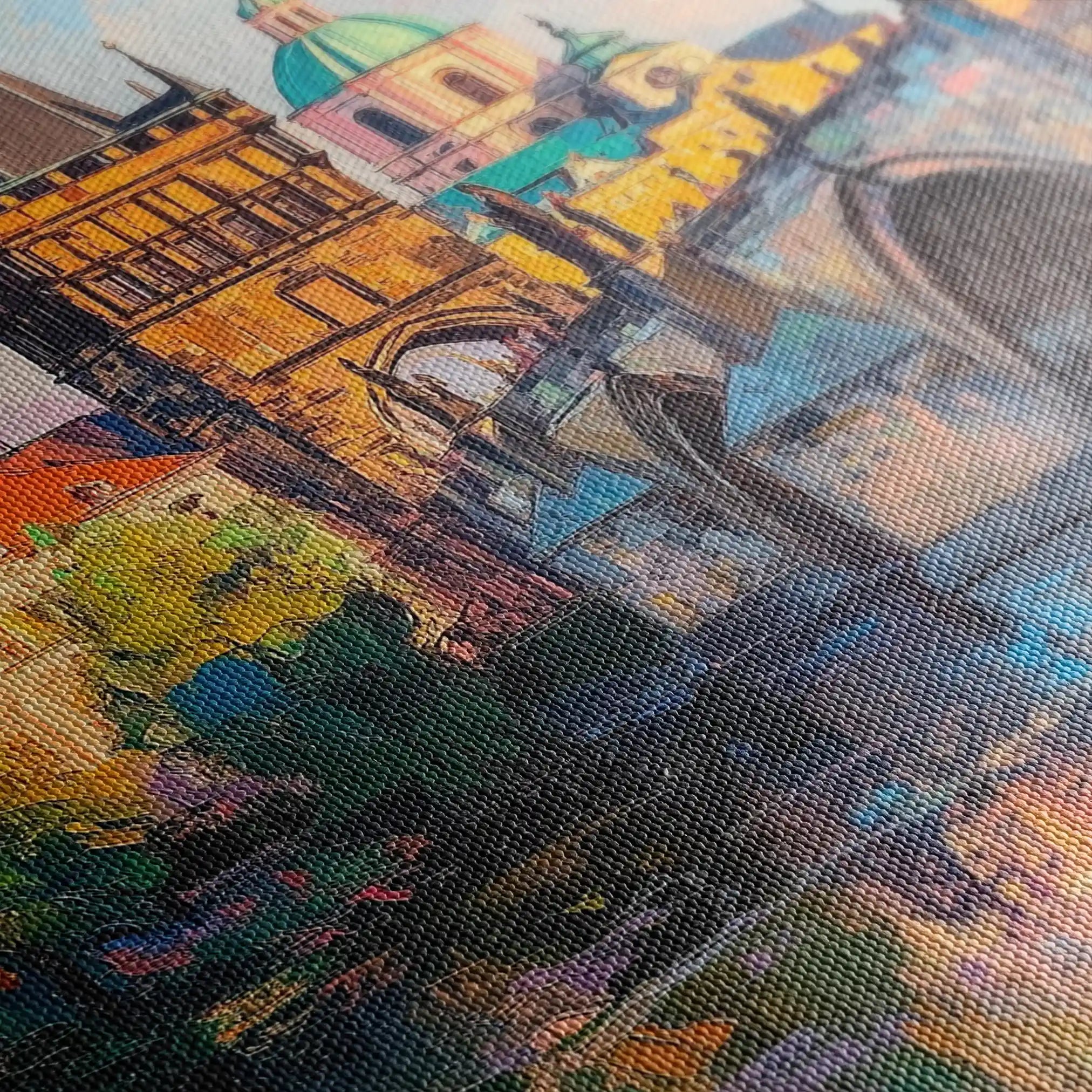 • الطباعة والمواد: طباعة فنية بأحبار أرشيفية على قماش قطني 410 جم/م² بسطح مطفي يقلّل الوهج ويبرز العمق.