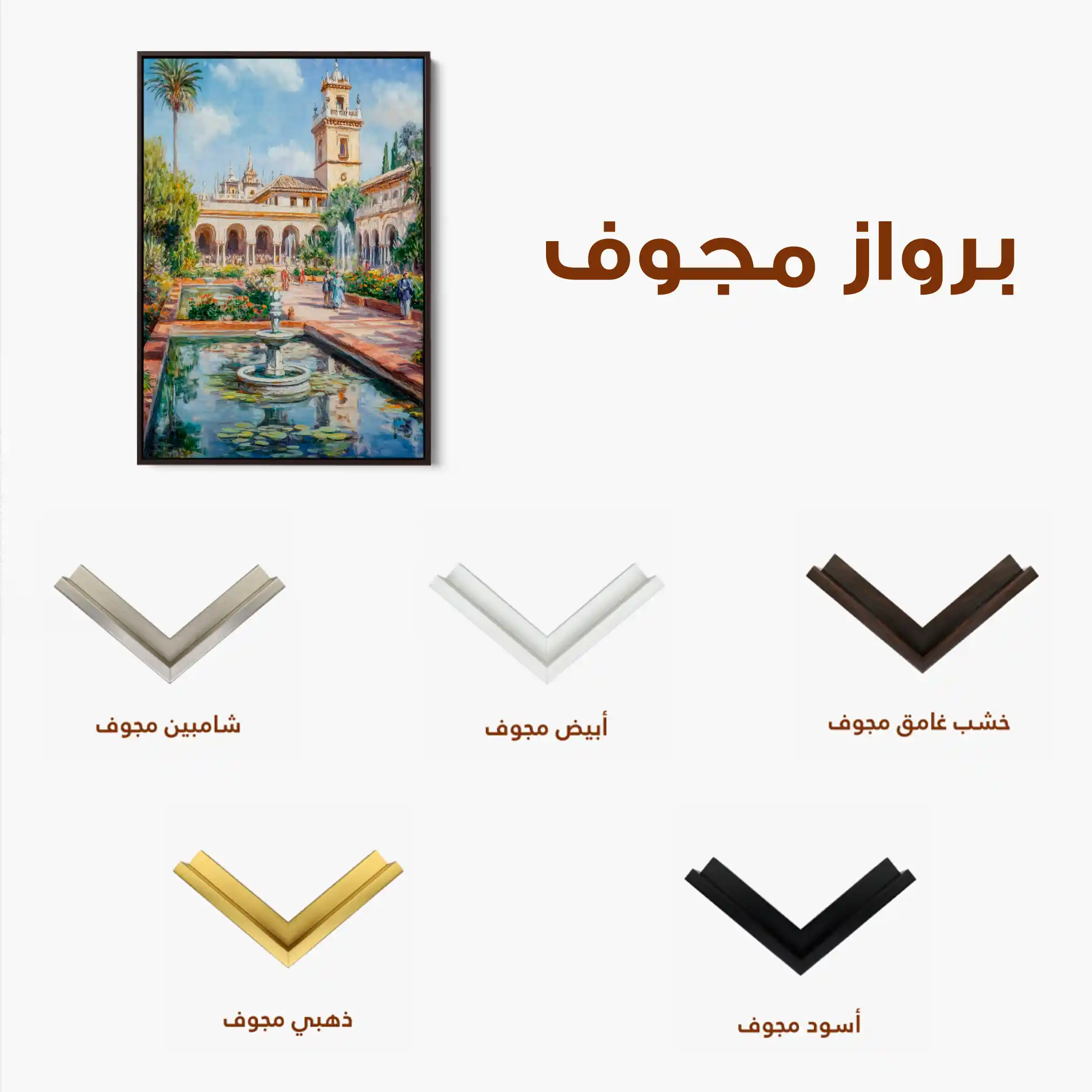 • الإطار (مجوف): إطار نحيف بفراغ رفيع يحيط باللوحة ليُبرز الحافة ويمنح ظلاً خفيفاً وإحساس صالات العرض؛ يصل جاهزاً للتعليق.