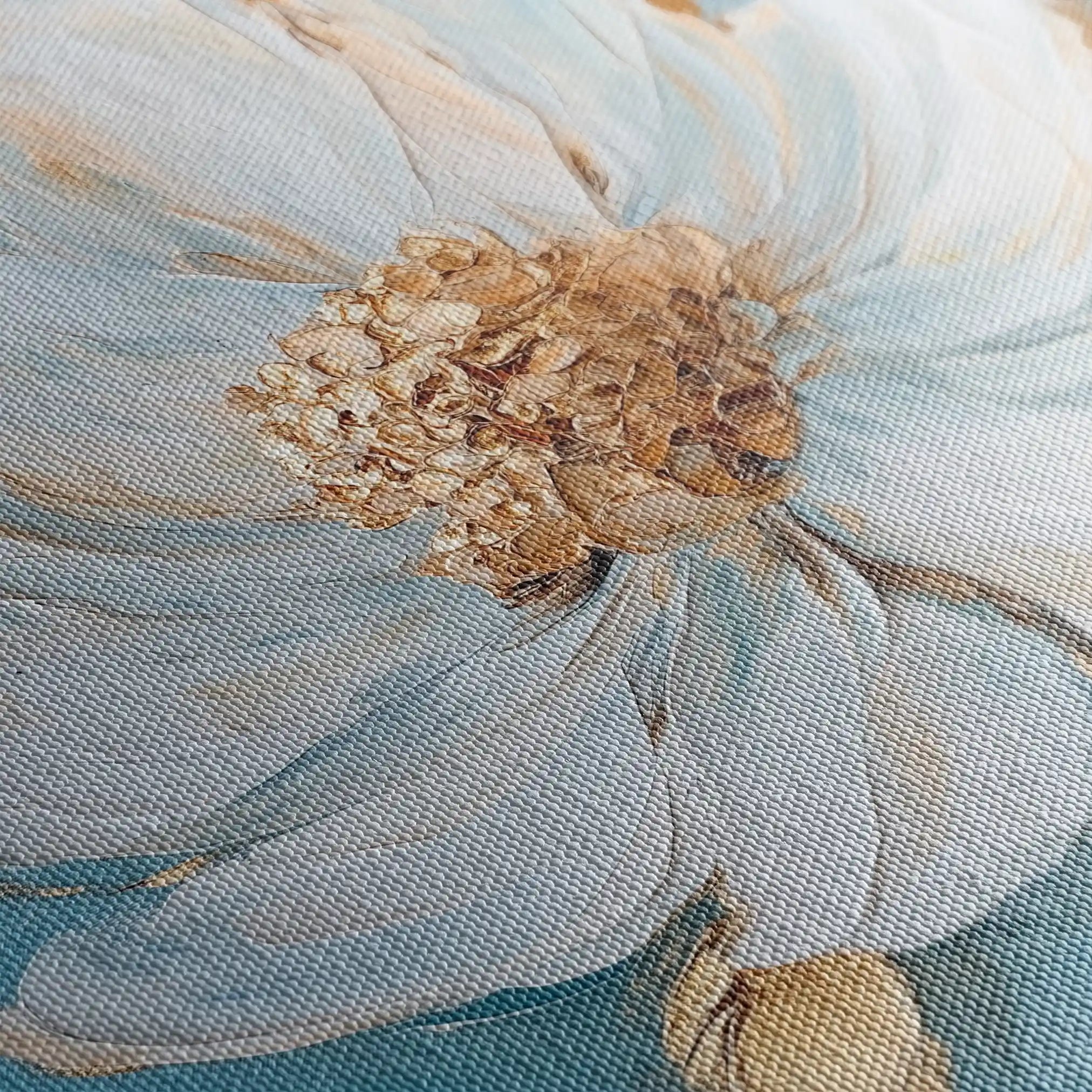 • الطباعة والمواد: طباعة فنية بأحبار أرشيفية على قماش قطني 410 جم/م² بسطح مطفي يقلّل الوهج ويبرز العمق.