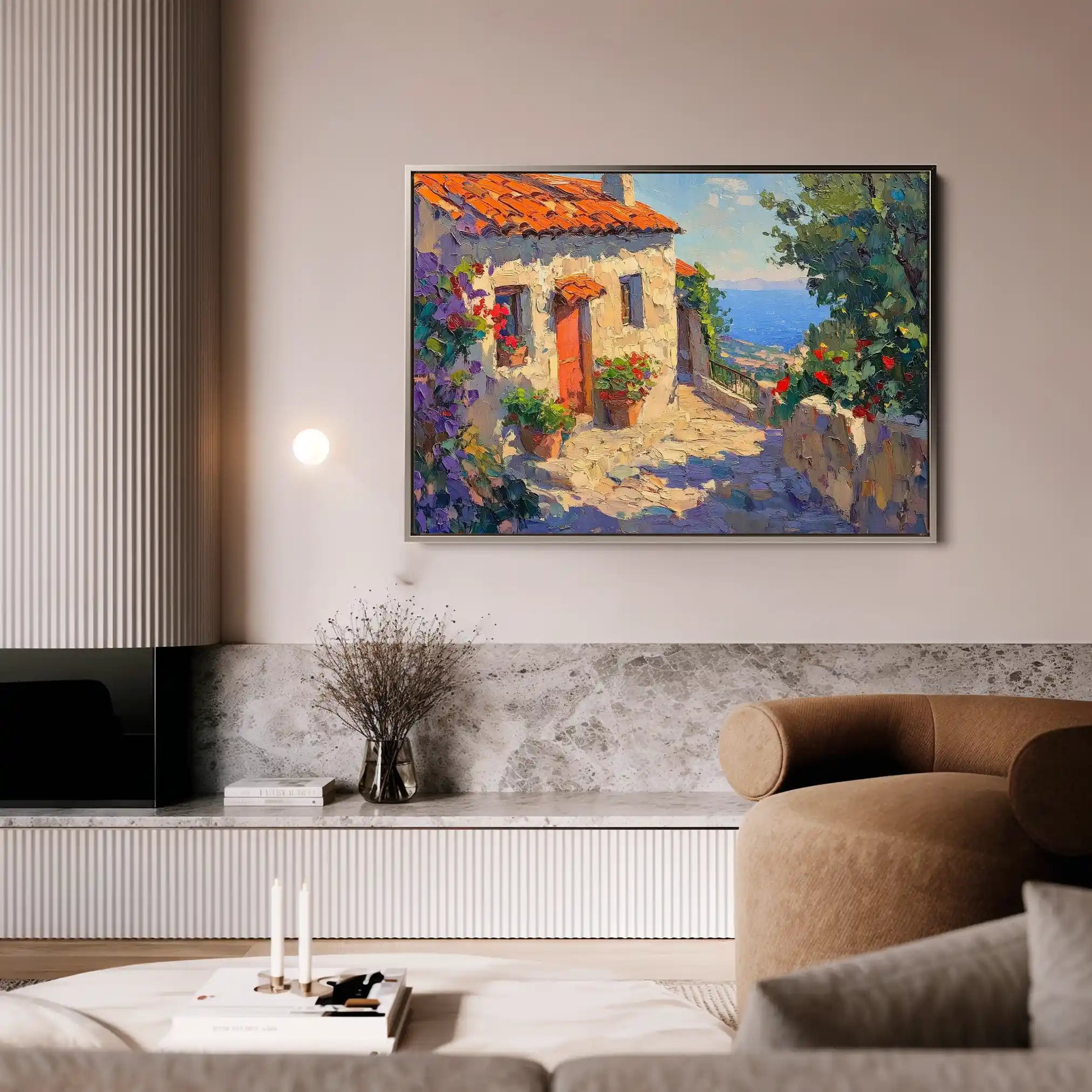 Modern wall art with quiet luxury. Museum-grade printing on 410gsm cotton canvas, set in a slim floater frame—clean, calm, ready to hang.