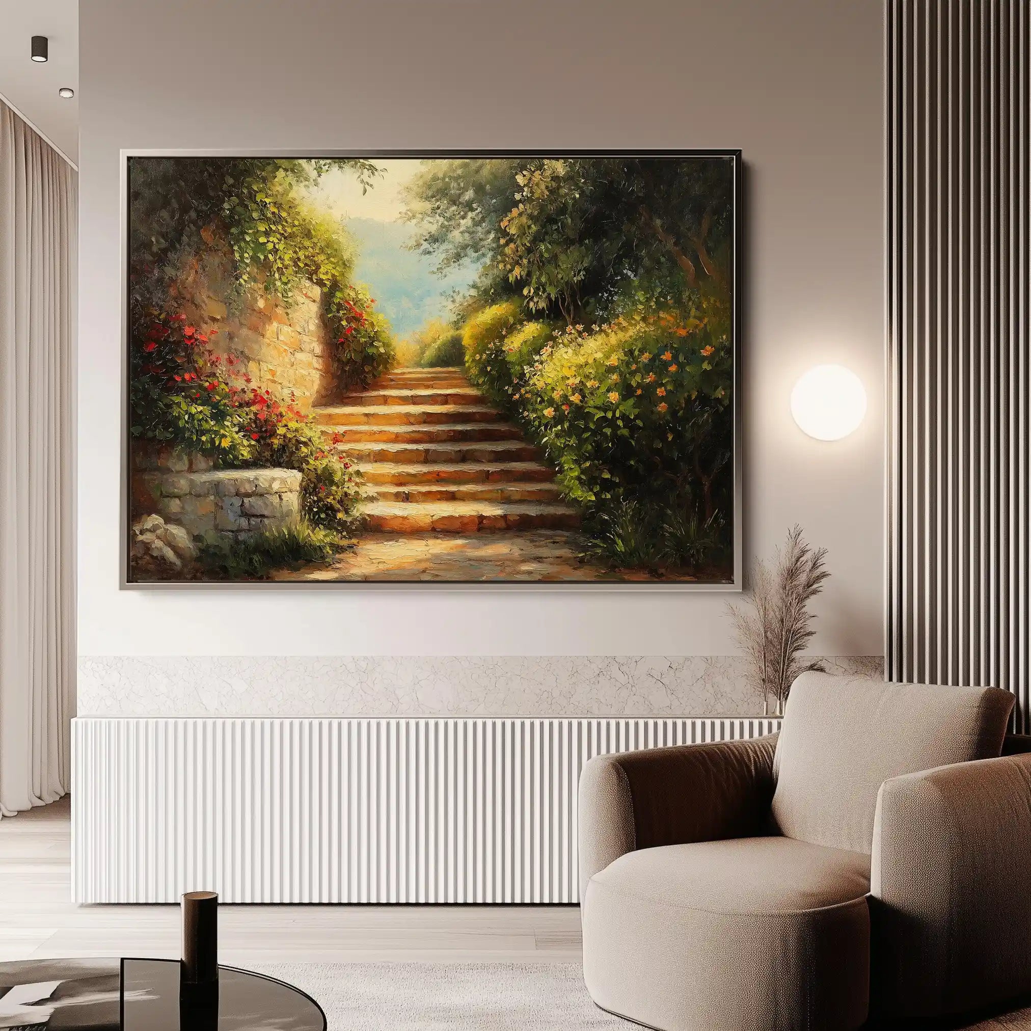 Modern wall art with quiet luxury. Museum-grade printing on 410gsm cotton canvas, set in a slim floater frame—clean, calm, ready to hang.