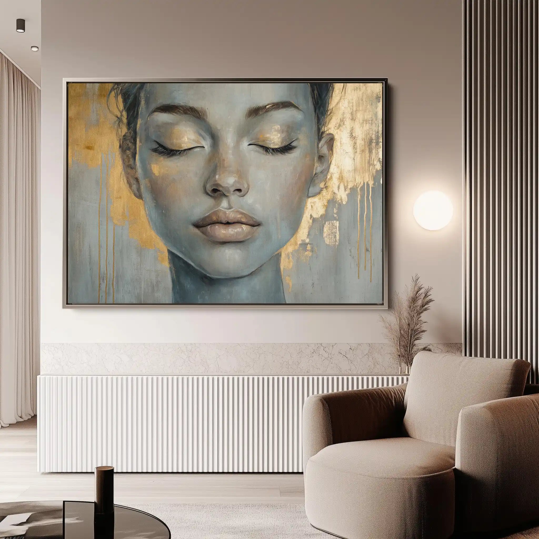 Modern wall art with quiet luxury. Museum-grade printing on 410gsm cotton canvas, set in a slim floater frame—clean, calm, ready to hang.
