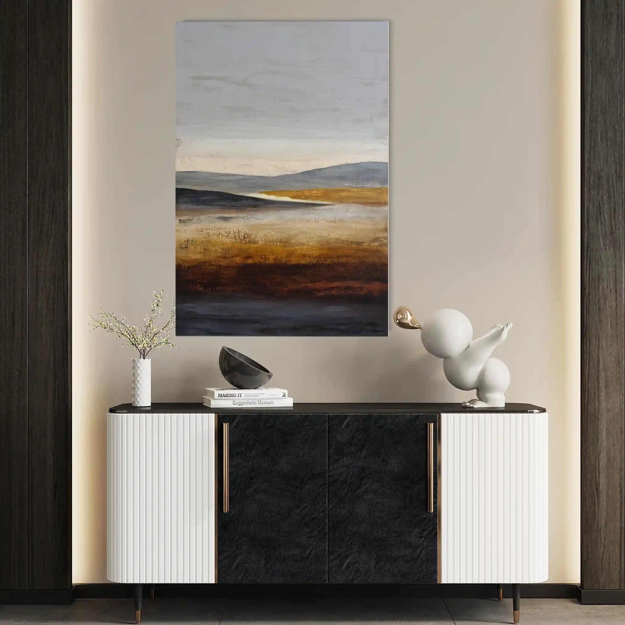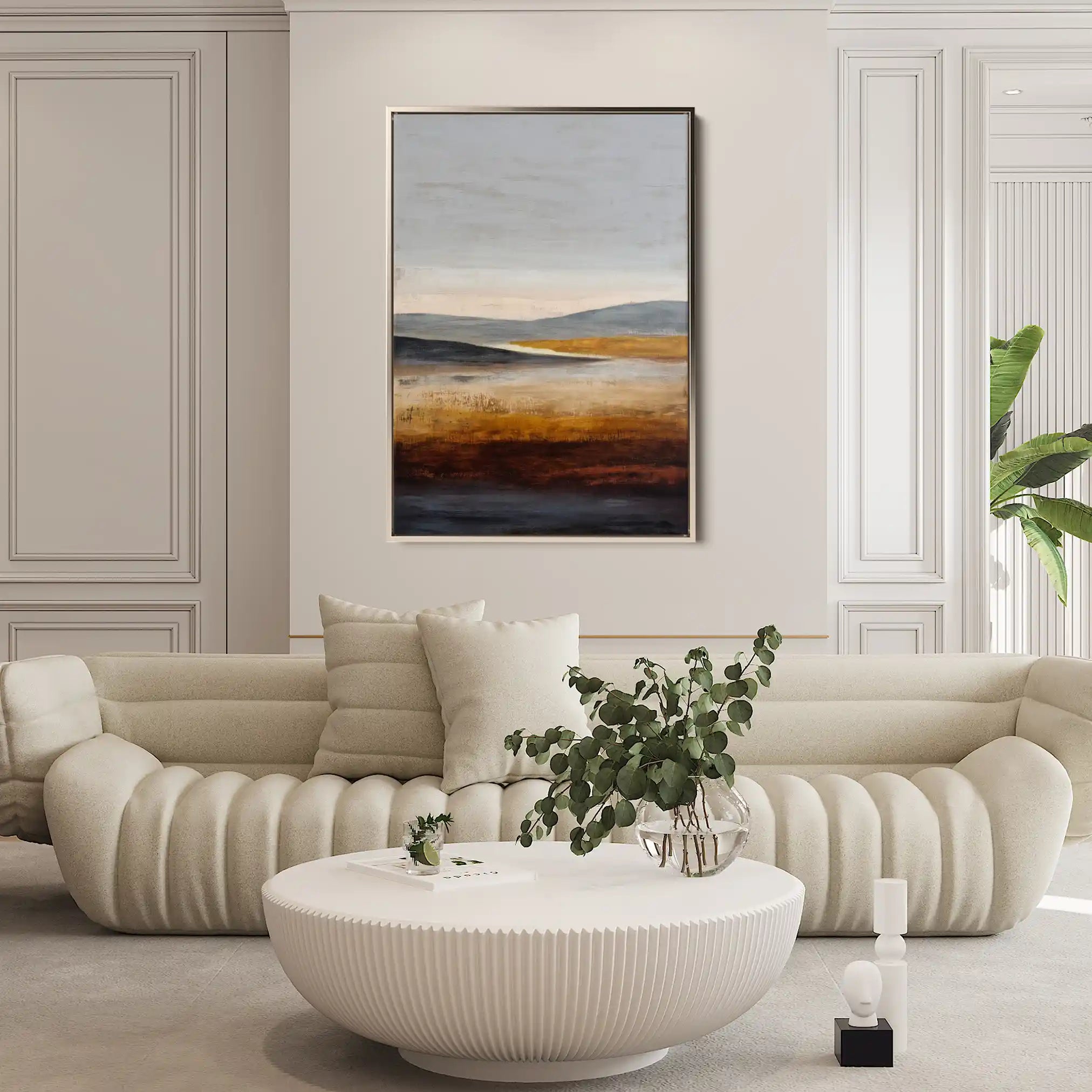 Modern wall art with quiet luxury. Museum-grade printing on 410gsm cotton canvas, set in a slim floater frame—clean, calm, ready to hang.