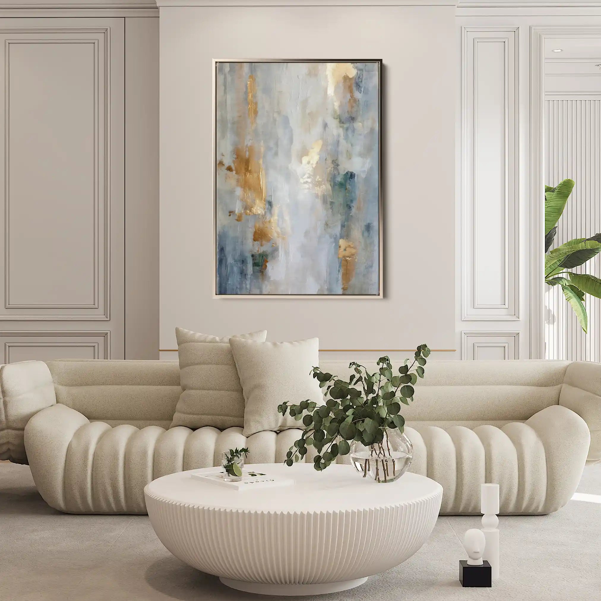 Modern wall art with quiet luxury. Museum-grade printing on 410gsm cotton canvas, set in a slim floater frame—clean, calm, ready to hang.