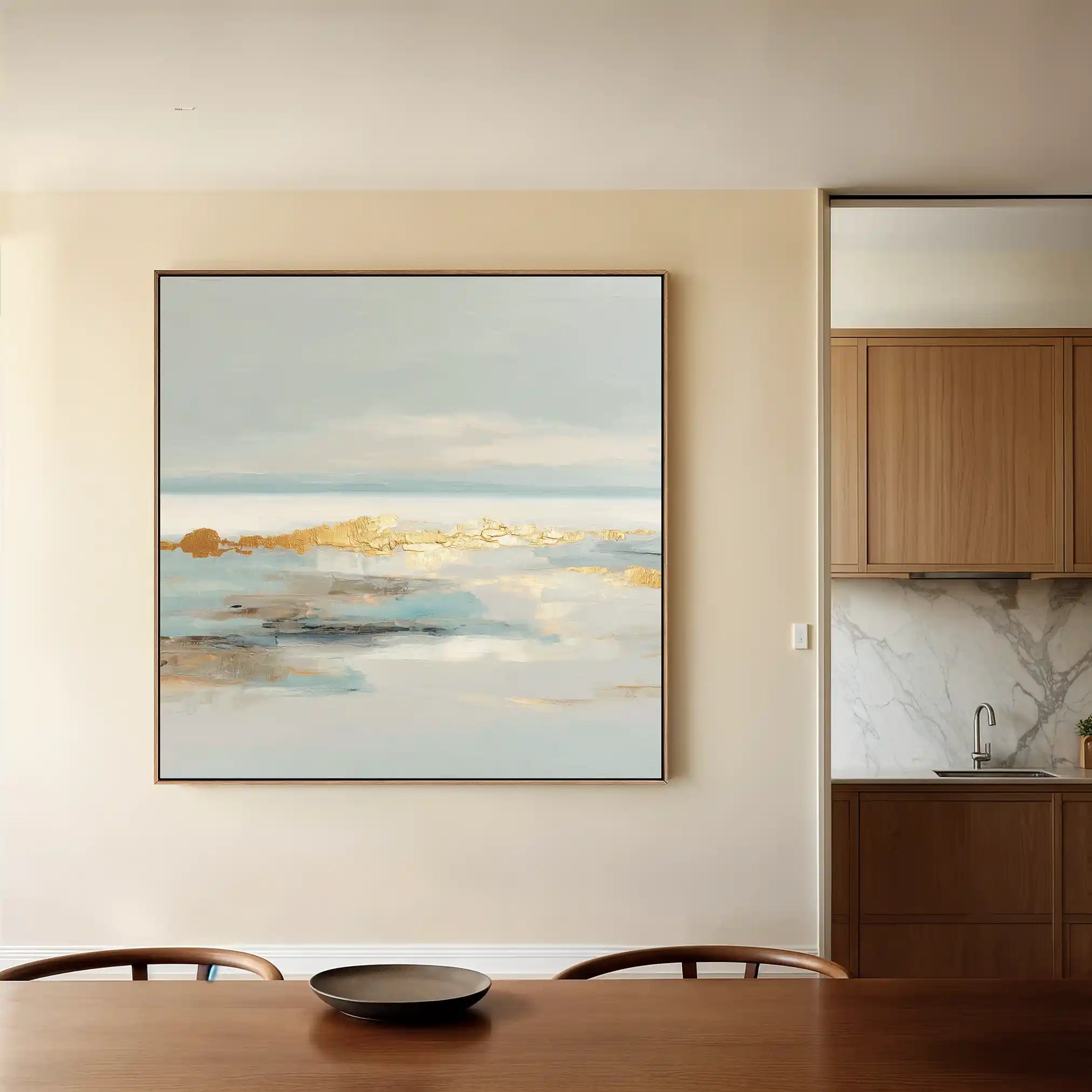 Modern wall art with quiet luxury. Museum-grade printing on 410gsm cotton canvas, set in a slim floater frame—clean, calm, ready to hang.