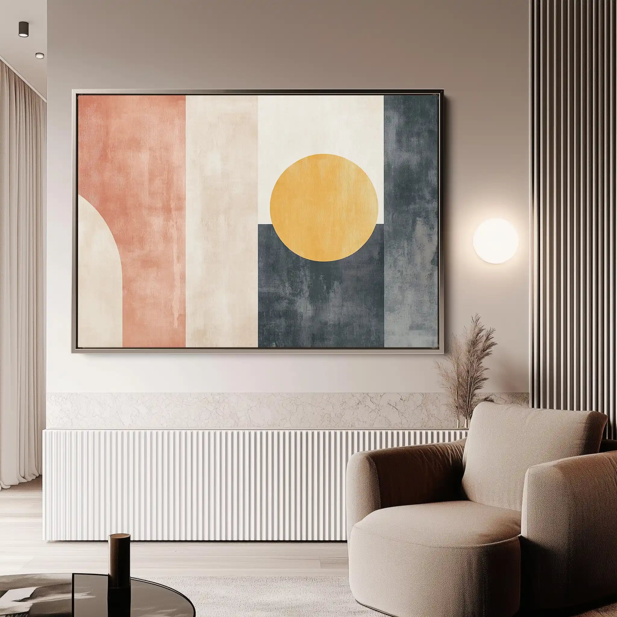 Modern wall art with quiet luxury. Museum-grade printing on 410gsm cotton canvas, set in a slim floater frame—clean, calm, ready to hang.